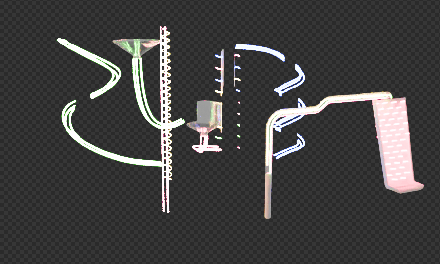 After making the run I started creating the materials. To make it standout against the building I tested different sets of materials. I started by using chrome/metallic materials for the rails and marbles. After seeing a test of the animation displayed on the building I discovered that the materials were too dull. From this, I decided to switch to neon materials. I used emission along with vibrant colours to stand out against the building.